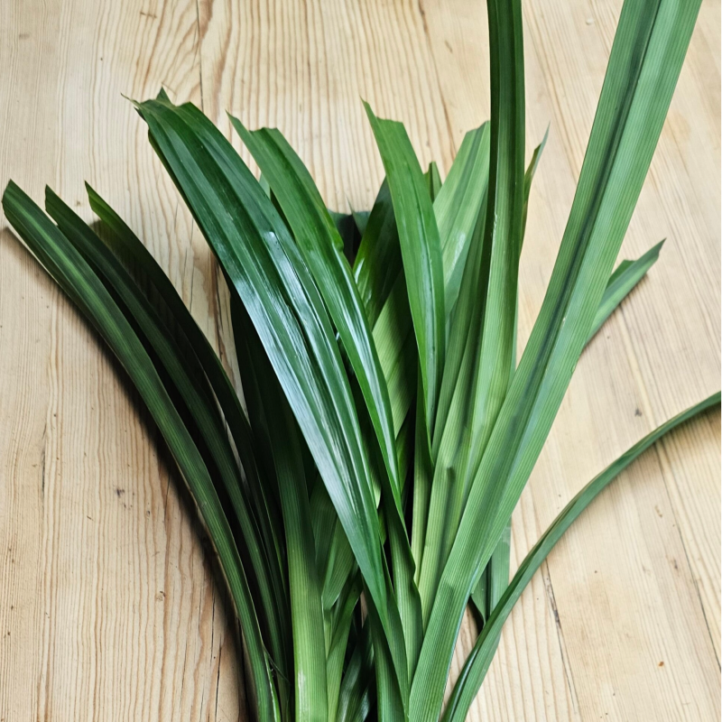 Den andre urtene er karriblader. Disse kan kjøpes tørket men i velassorterte Asia butikker kan du kjøpe dem ferske. Disse kan også fryses. Den siste urten er panda blader. Disse er lange blader fra planten med det norske navnet: "Skrupalme". Selv om både blomsten og bladene blir brukt, er det bladene vi skal bruke i dag. Disse har en delikat aroma og brukes i forskjellige curry retter og til å gi en delikat aroma til ris. Jeg har også kjøpt inn limeblader som jeg skal tilsett i min rett. Min rett er inspirert av retten fra Stri Lanka men helt autentisk er den neppe. Så jeg tilsette alle de gode ingrediensen med masse smak for en meget aromatisk curry,
