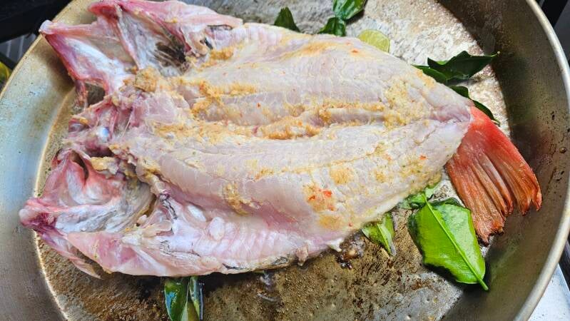 Marinaden minner litt om den jeg kalte Thai marinade og som jeg brukte på uer men jeg har ikke Galingale eller lime blader i denne. Liker du den smaken kan du sikkert tilsette dette eller ingefær, men i den Vietnamesiske oppskriften, inngår ikke disse ingrediensen. Får du tak i fersk sitron gress er dette best, men ferdig puré på boks går også greit.