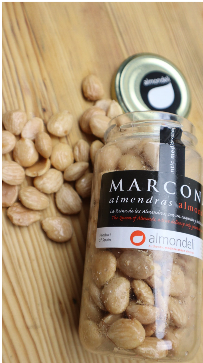 | marcona mandler eller mandler som er flådd og ristet i ovn på 180 grader i 10 minutter | 150 g |