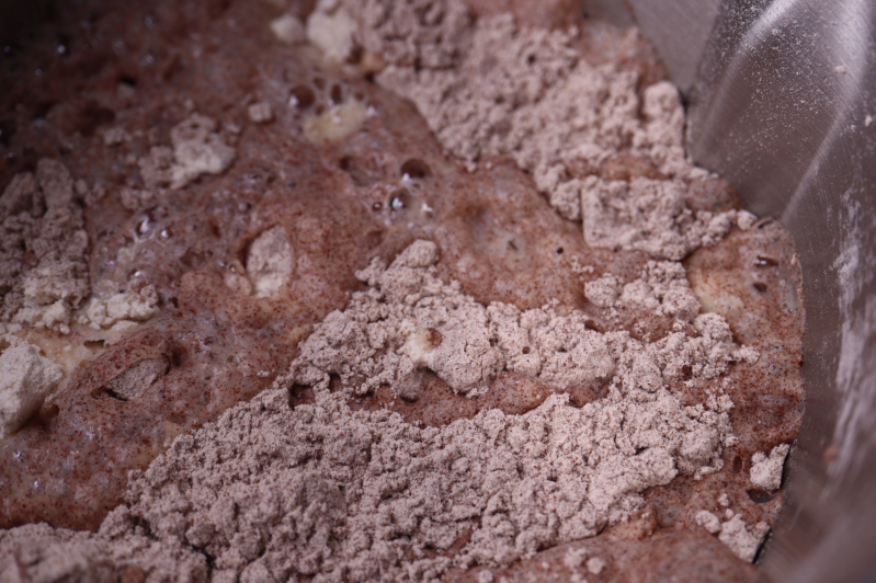 Denne deigen får stå over natten. da bør den ha utviklet seg og minst blitt dobbel så stor i volum. Derfor er det greit å putte den i et måle beger. Neste dag kan du se hvor mye den har økt i volum. Hvis den har falt sammen, i løp av natten ser du etter merket i beholderen for hvor høyt den har vokst. Deigen bør ha hevet seg til det dobbelte eller mer. Husk at siden dette melet ikke inneholder gluten, vil deigen være litt annerledes i konsistens, og lettere falle sammen.