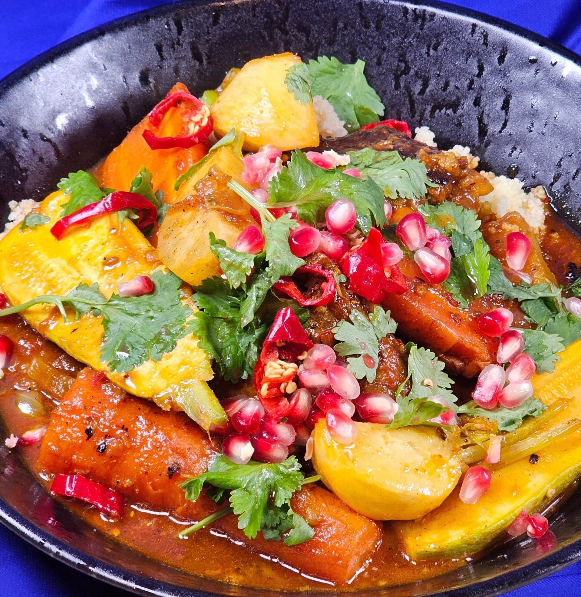 Det er mer smak i disse stykningsdelene og de tåler bedre å koke lenger i den smakfulle sausen. Har du godt lammekjøtt trenger du bare noen gode grønnsaker og noen typisk marokkanske ingredienser. Ras el Hanut, denne krydder blindingen fra Nord Afrika gir deg den den autentisk gode smaken sammen med syltede Beldi sitroner og litt tørket frukt. Server med couscous og pynt med koriander blader og granateple kjerner for en fargerik og smakfull rett.