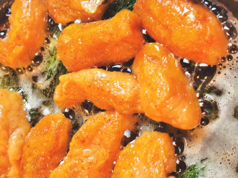 Tilsett grønnkålen som er renset for grove stilker. Stek i ca 2 minutter.