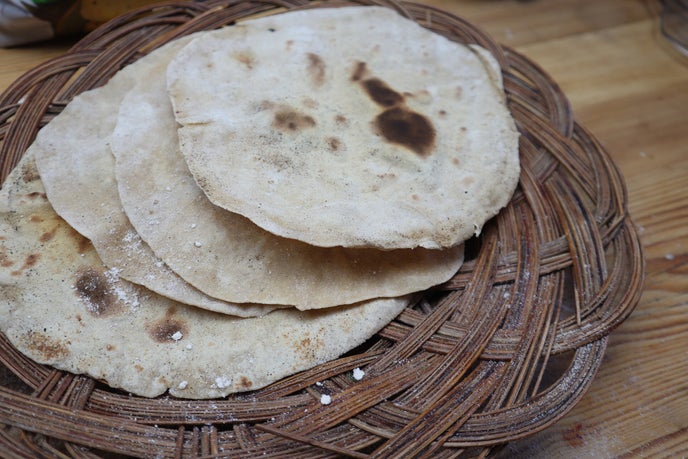 Ferske nystekt ROTI brød egner seg til dyppe i olje og Dukkah.