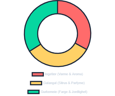 Ingefær, galangal og gurkemeie er fundamentet i mye asiatisk matlaging. Selv om de er i slekt, har de unike roller: ingefær for sin skarpe varme, galangal for sin sitrusaktige aroma, og gurkemeie for sin jordlige smak og gylne farge.
