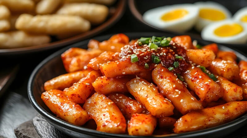 Denne populære gatematen er definert av sin tykke, søte og sterke røde saus. Gochujang er hovedingrediensen og gir retten sin karakteristiske farge og smak. Den moderne, sterke versjonen er en oppfinnelse fra 1960-tallet.