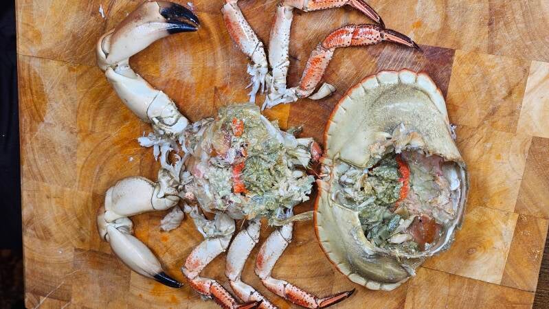 Den mest smaksrike delen av krabben er leveren, som ligger inne i selve skjoldet.