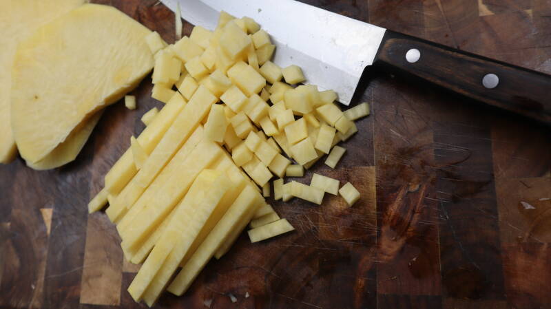 Kutt grønnsakene du velger å bruke i suppen smått, terninger eller skiver som ikke er for store.
